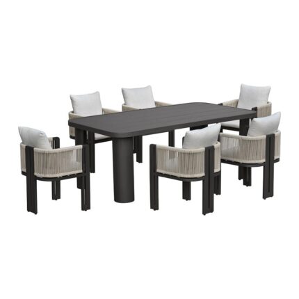 BOSTON Dining Set Τραπεζαρία Κήπου Βεράντας: Τραπέζι + 6 Πολυθρόνες Alu Ανθρακί – Μπεζ Table200x100x75-Chair:54x56x66