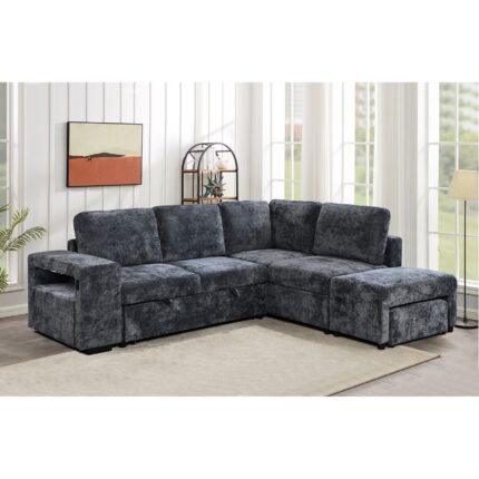 FLEXY Καναπές Αριστερή Γωνία – Κρεβάτι, με Χώρους Αποθήκευσης φωτιζόμενο, Ύφασμα Ανθρακί 250x202x87cm H.91cm