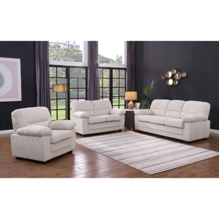 VEGAS Set Σαλόνι – Καθιστικό Πολυθρόνα-2Θέσιος-3Θέσιος, Ύφασμα Κοτλέ Μπεζ 100×98/154×98/204×98 x H100cm