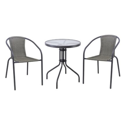 BALENO Τραπέζι Κήπου – Βεράντας, Μέταλλο Βαφή Ανθρακί, Γυαλί Tempered 70x70x70cm