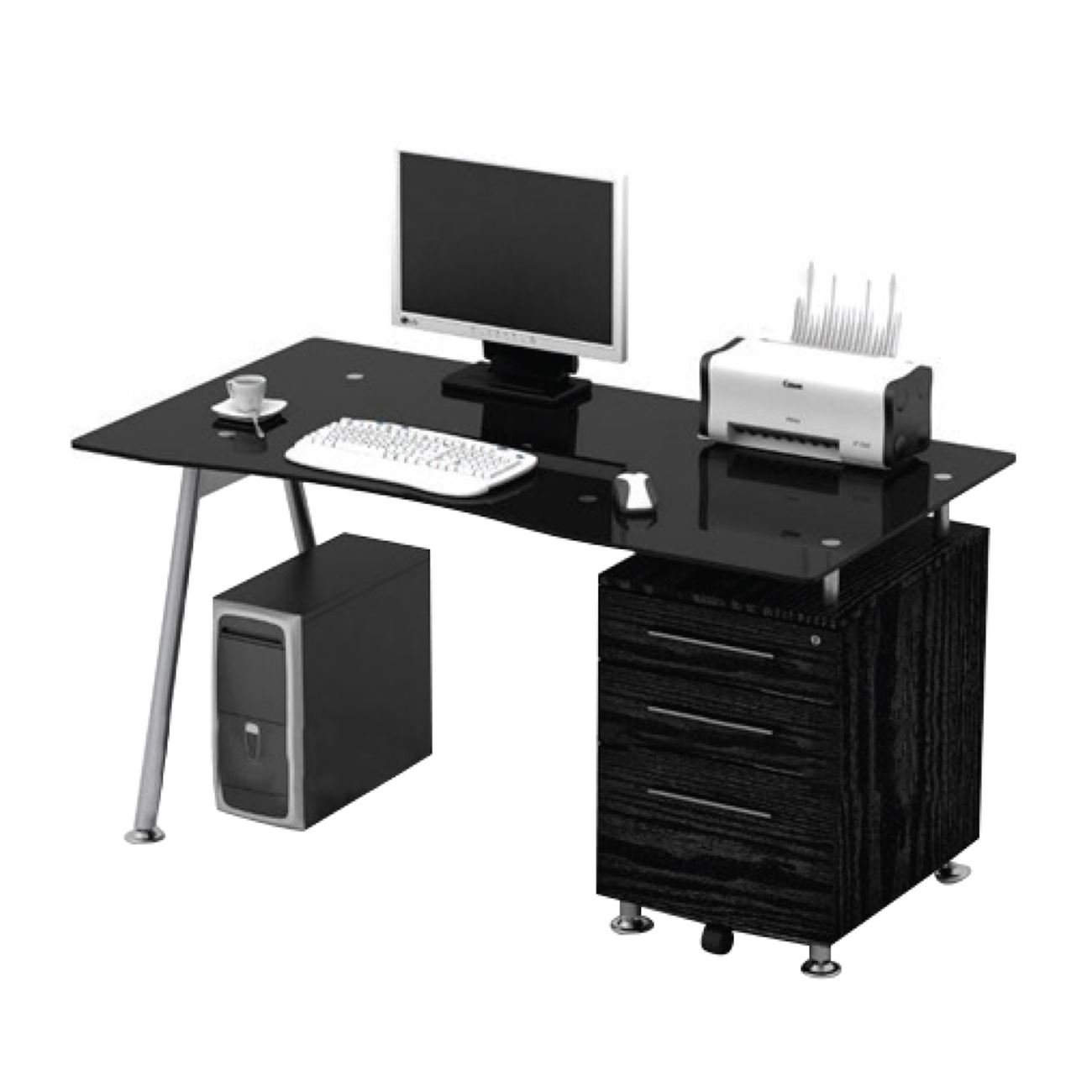 ΕΟ413,2 ΓΡΑΦΕΙΟ 150x80cm Μεταλλικό Μαύρο/Γυαλί Μαύρο