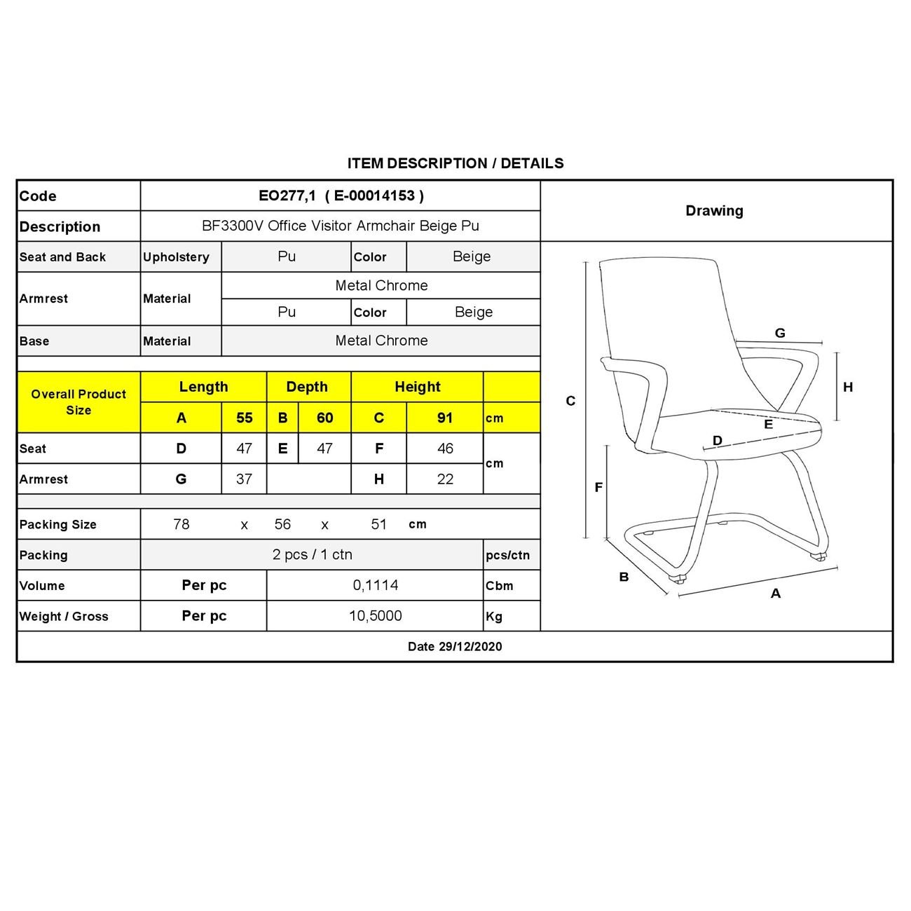 BF3300V Πολυθρόνα Γραφείου Επισκέπτη, Μέταλλο Βάση Χρώμιο PU Μπεζ ΕΟ277,1