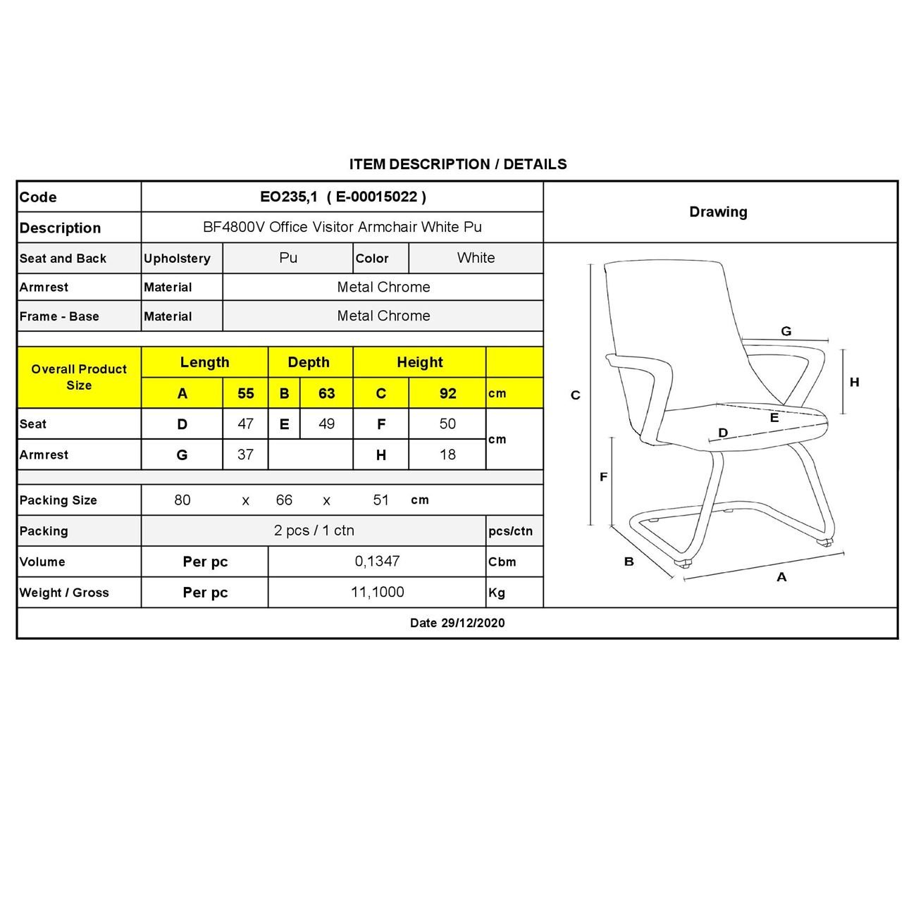 BF4800V Πολυθρόνα Γραφείου Επισκέπτη, Μέταλλο Χρώμιο, PU Άσπρο ΕΟ235,1