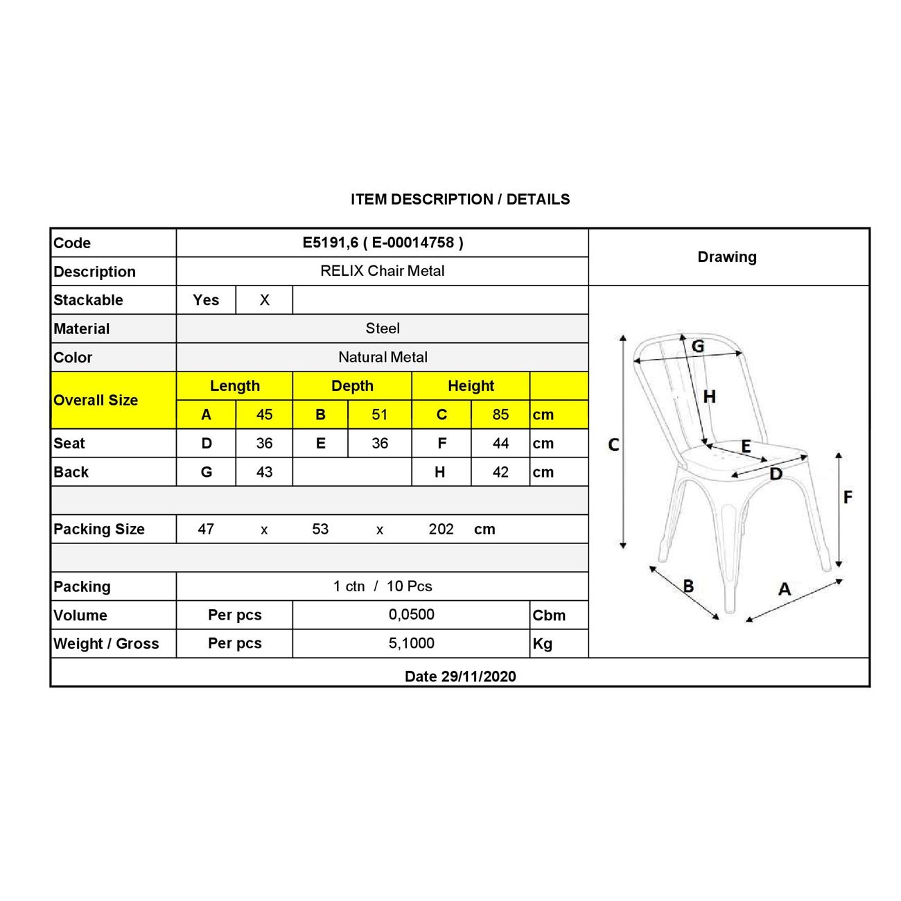RELIX Καρέκλα-Pro, Στοιβαζόμενη, Μέταλλο Βαφή Metal με Διακοσμητική Σκουριά Ε5191,6