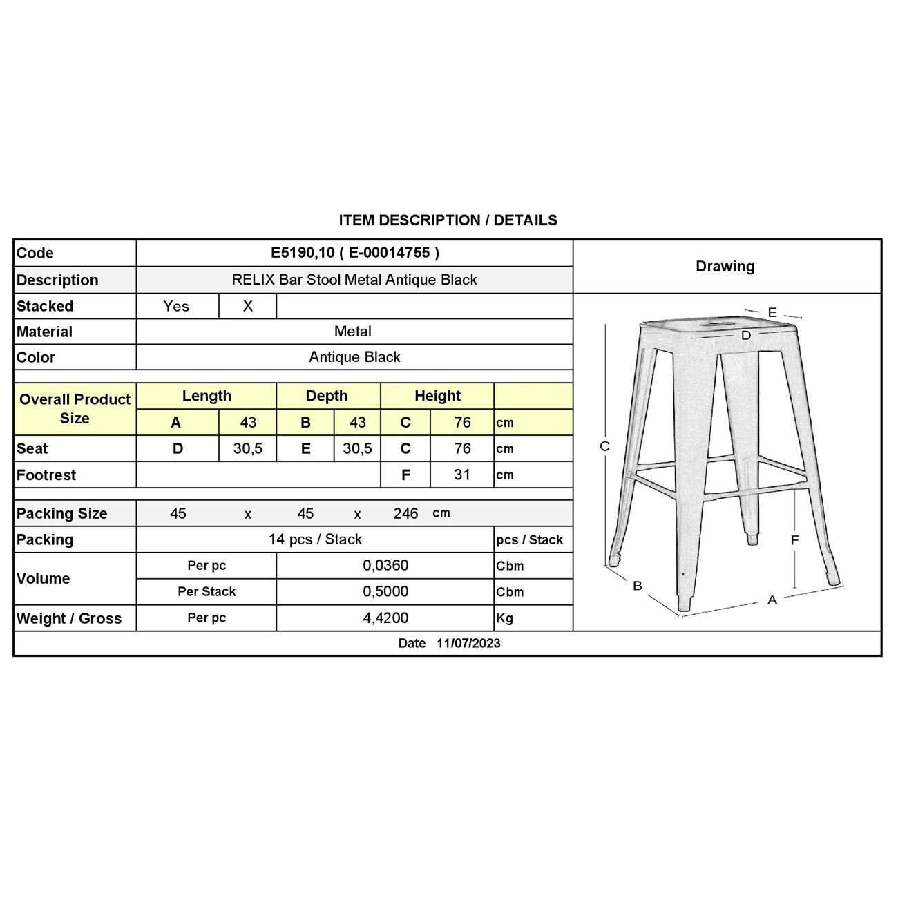 Ε5190,10 RELIX Σκαμπό Bar-Pro Μεταλ.Antique Black