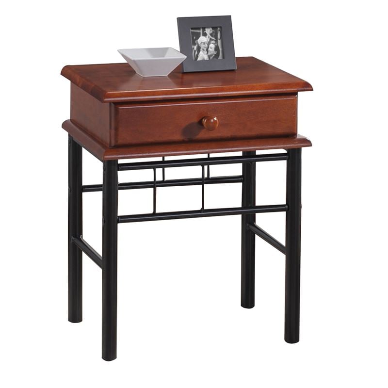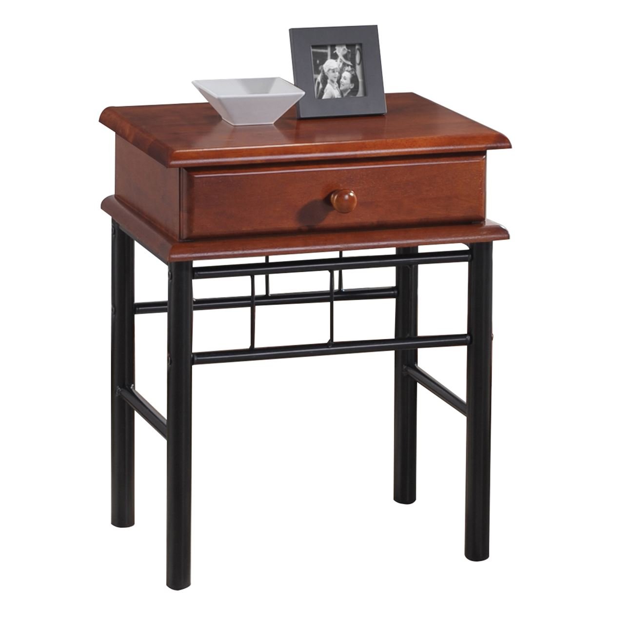 Ε8027 FLORA Κομοδίνο 33x45cm Μεταλ.Μαύρο/Ξύλο Καρυδί