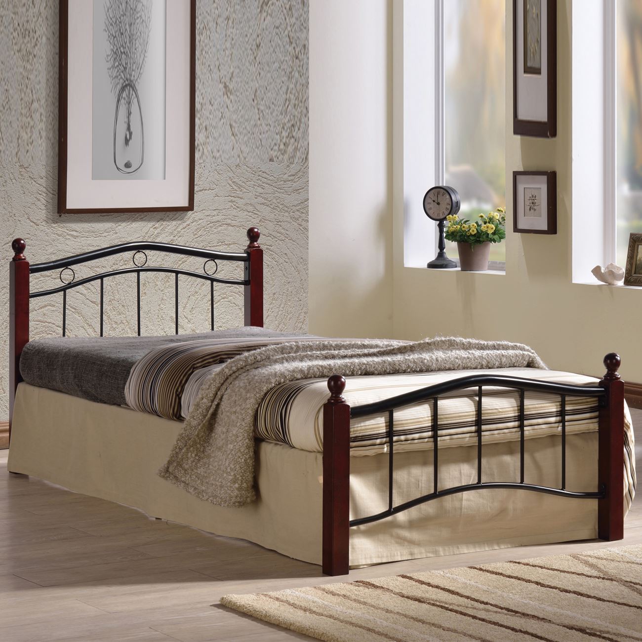 Ε8035 – VICTOR Κρεβάτι (για στρώμα 90x200cm) Mεταλ.Μαύρο/Ξύλο Καρυδί