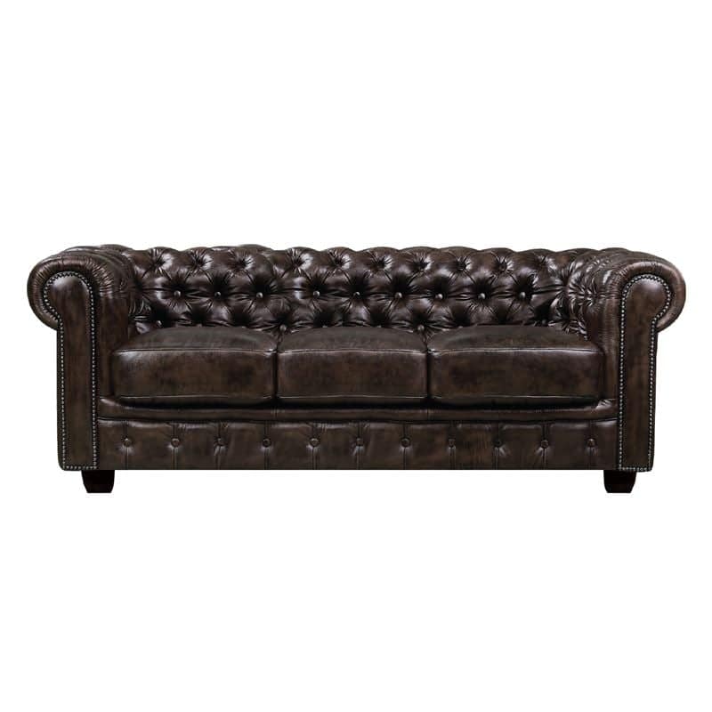 CHESTERFIELD Birmingham Καναπές 3Θέσιος Σαλονιού Καθιστικού,Δέρμα Απόχρωση Καφέ Ε9574,3