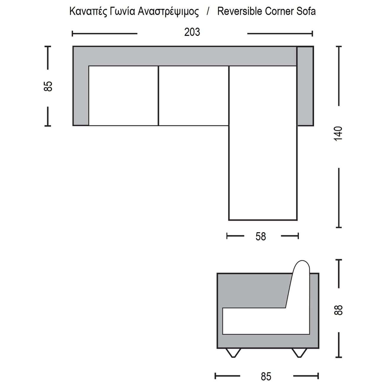 Διάσταση/Dimensions 203x140x85cm H.88cm