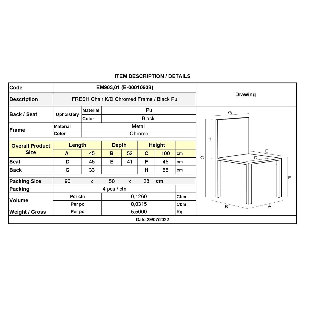 ΕΜ903,01 FRESH Καρέκλα K/D Χρώμιο/Pu Μαύρο