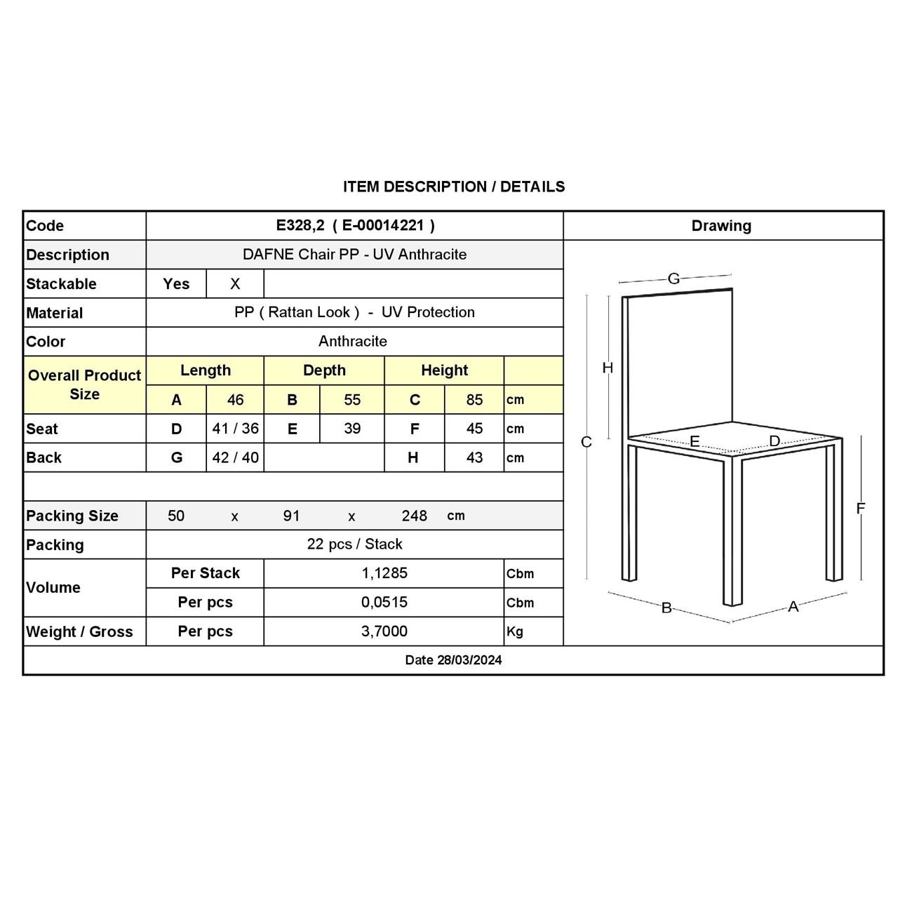Ε328,2 DAFNE Καρέκλα PP-UV Ανθρακί (Rattan Look) Στοιβαζόμενη