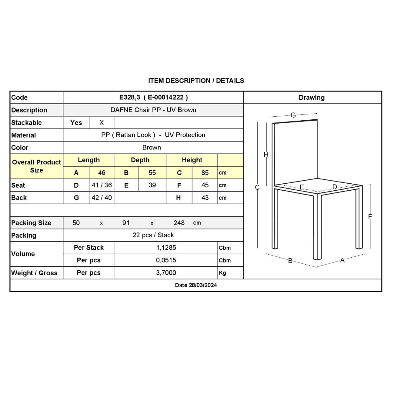 Ε328,3 DAFNE Καρέκλα PP-UV Καφέ (Rattan Look) Στοιβαζόμενη