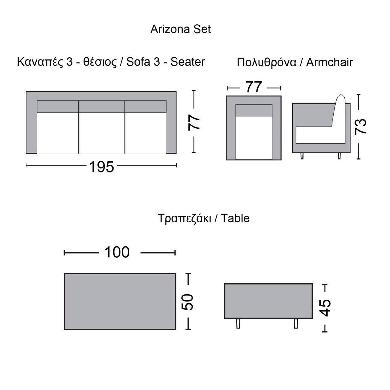 Διάσταση/Dimensions Τραπεζάκι+Καναπ.3θέσ+2 Πολυθ
