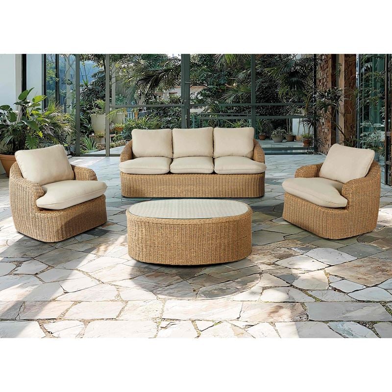 CHICAGO Set Σαλόνι Κήπου: 3θέσ +2 Πολυθρόνες+1 Τραπεζάκι ALU -Wicker Φυσικό, Μαξιλάρια Μπεζ 204x94x76-89x93x76-115x51x44cm