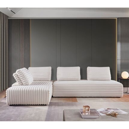 BRISTOL Καναπές Σαλονιού Καθιστικού Πολυμορφικός, Τεχνητή Γούνα Άσπρο 318x212x106 H.89cm
