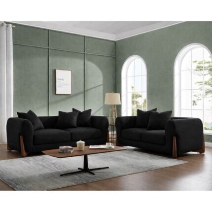 KANSAS Set Σαλόνι – Καθιστικό, 2Θέσιος-3Θέσιος, Teddy Ύφασμα Μαύρο 174×99 / 211×99 x H90cm